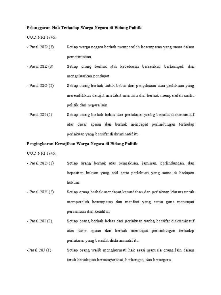 Hak Dan Kewajiban Warga Negara Dalam Bidang Politik - Doc Soal Pkn Semua Kelompok Aris Dwi Prasetyo Academia Edu - Dalam hubungannya dengan bernegara, hak asasi meletakkan kewajiban kepada negara untuk melindunginya, serta mencegah dari.